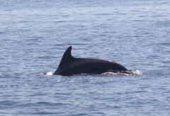 By comparing the photographs and video footage we received with the Blue World Institute’s catalogue, we recognised an old acquaintance — the female bottlenose dolphin Skalina. Skalina is an adult female whom we first observed in 2005. To date, we have recorded a total of 11 sightings of her. In 2014, Skalina had her first calf, named Bubbles, who has since been observed along the southern coast of Istria. In 2019, she had another calf, which has not yet been named and was last seen in 2023. Her closest companions are Sansego (with whom we have observed her on five occasions) and Bonbon, also a female, likely of a similar age. Skalina has been seen in association with more than 260 other dolphins in total, and her sightings have ranged from Kamenjak in Istria and the western side of Cres all the way to Kvarnerić and Veli Lošinj. Her movements recorded to date have generally been within an area of around 100 km between the two most distant points. In this case, however, Skalina has been sighted almost 200 km from the southernmost point of her previous observations.